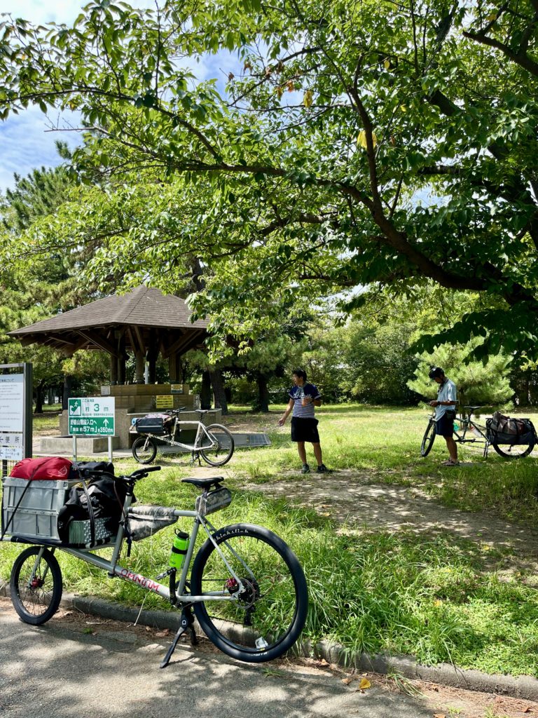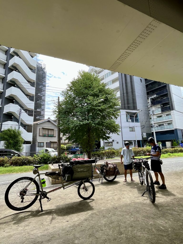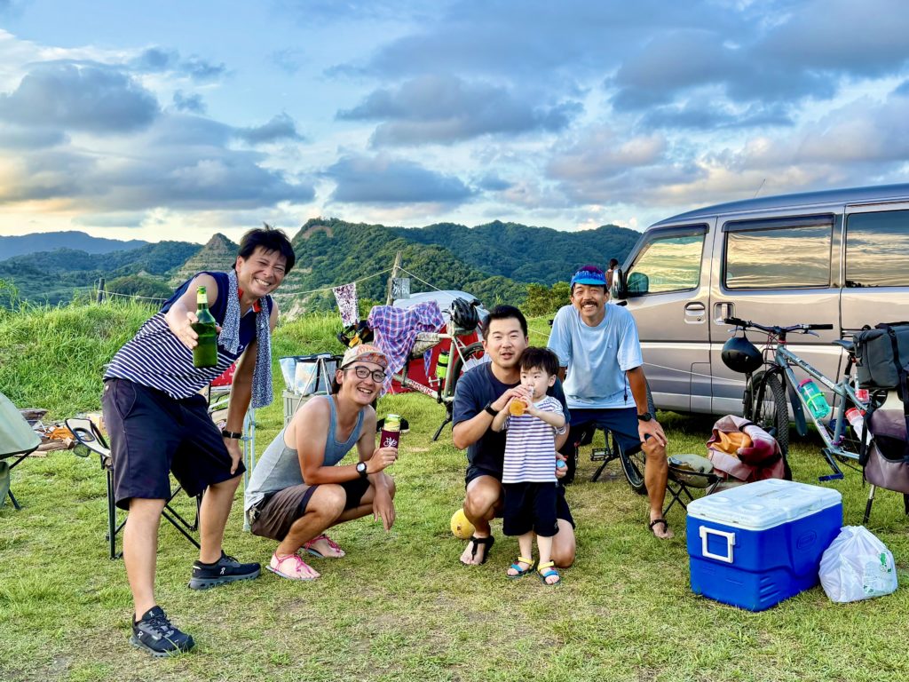 荷物の総重量は2〜30kgはあったでしょう。ヤナケンさんのカーゴバイクにも折り畳みテーブルや椅子を、ツッチーさんのロングテールバイクにもかなりの量の荷物を積んだので、道ゆく人に「旅ですか?」なんて聞かれることも度々ありました(実際は一泊旅行ですが)。キャンプ場では5人分のカレーを焚き火鍋で作れ、ゆったりとした時間を満喫。真夏のキャンプで道中は休憩を多めに挟みながらだったので、次回は気温の落ち着いたころに快適な環境でキャンプします。