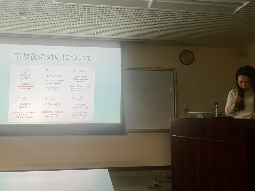 今年の安全大会ではまず会の趣旨や位置付けを説明したのちに、2025年度までの業務中に発生した事故やトラブルの事例を、過去のデータと照らし合わせながら報告。また、もし事故やトラブルが起こってしまった場合の対応も資料にまとめて皆で共有・確認しました。