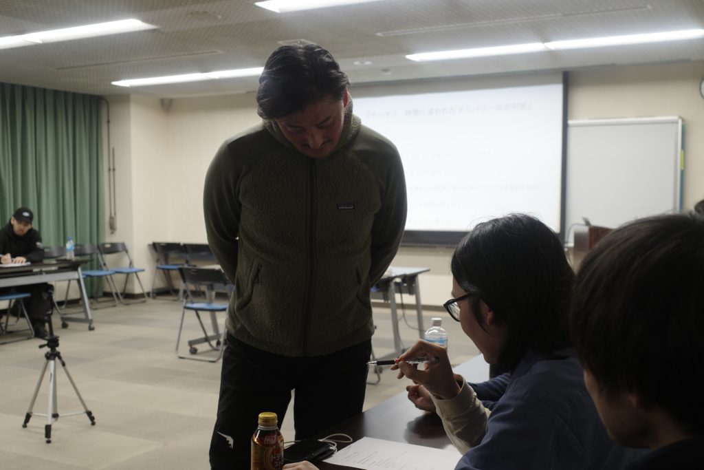 続いて、業務中に起こりうる事例をテーマにしたグループディスカッションを実施。【時間に追われたデリバリー中の判断】と【貿易関係の手続きのミスと引き継ぎ対応】というふたつのテーマを設定し、グループごとにそれらの解決策や改善案を話し合い、発表しました。
