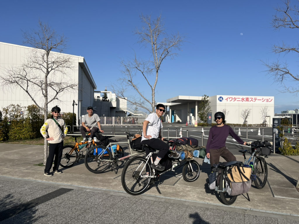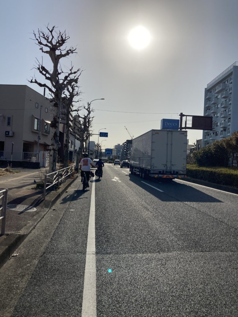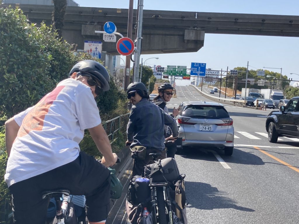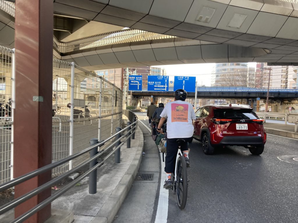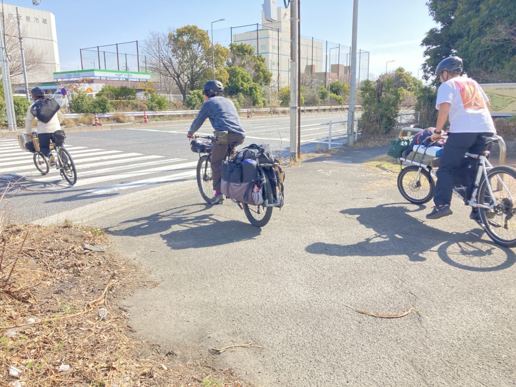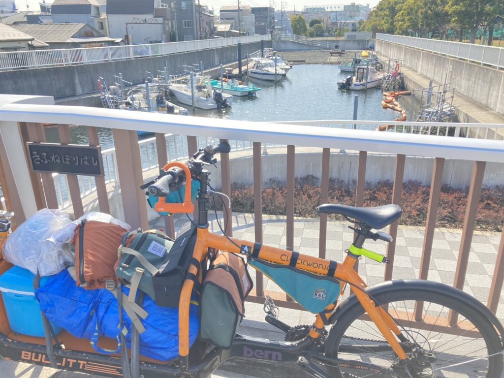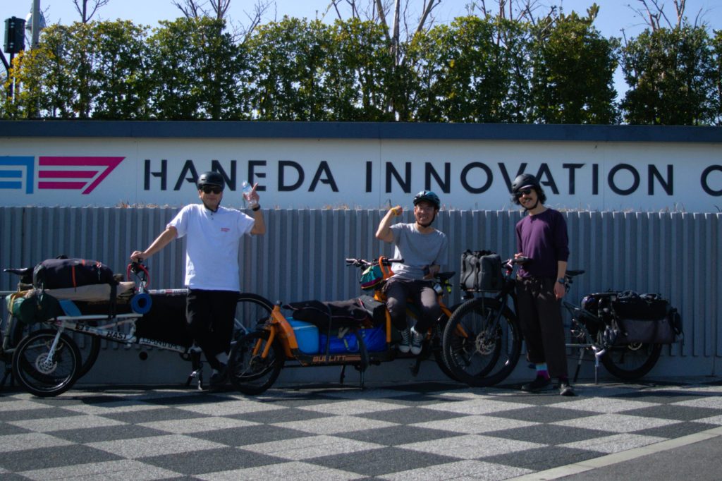 お昼に川崎駅に集合して、まずは羽田空港方面へ! 多摩川沿いをそれぞれのカーゴバイクでゆっくりと進み、多摩川スカイブリッジという大きな橋を渡ってみました。羽田空港が最寄りの新型商業施設・HICityでは足湯に浸かりながら飛行機を眺め、また“散走ネットワーク” の方々と自転車イベントに関する会談をしたりと、有意義な時間を過ごすことができました。